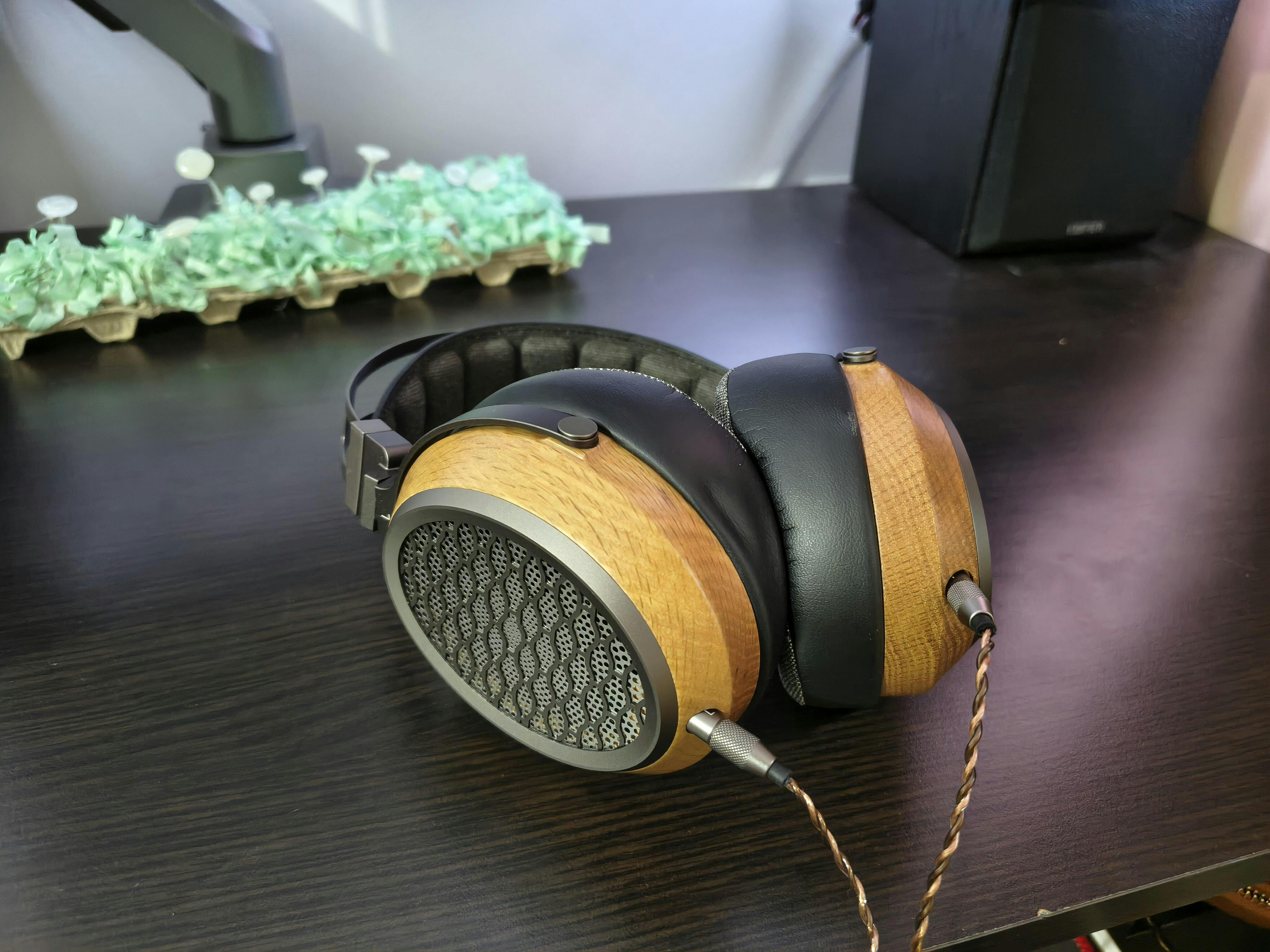 *La carcasa de los auriculares está hecha de roble rojo pulido a mano, lo que le da un acabado delicado y elegante.