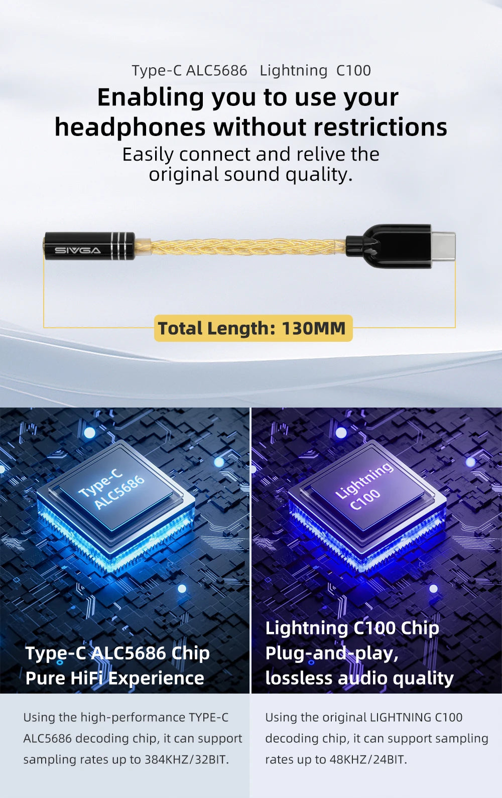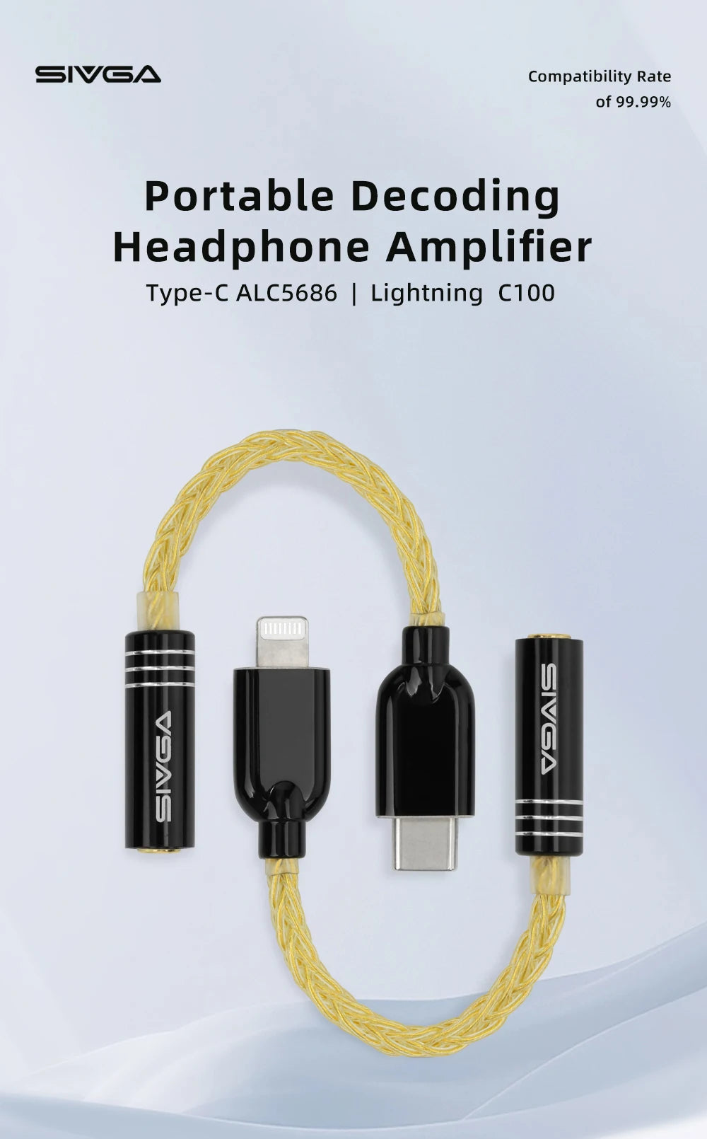 SIVGA 3.5mm Female to Type-C/Lightning Audio Adaptor High-fidelity Portable Decoding Headphone Amplifier