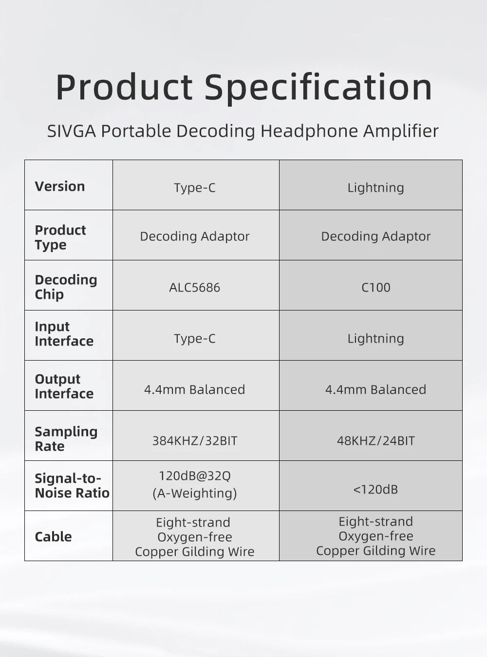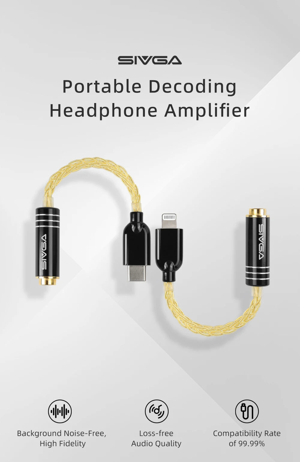 SIVGA Audio Adaptor High-fidelity Portable Decoding Headphone Amplifier 4.4mm Female to Type-C/Lightning