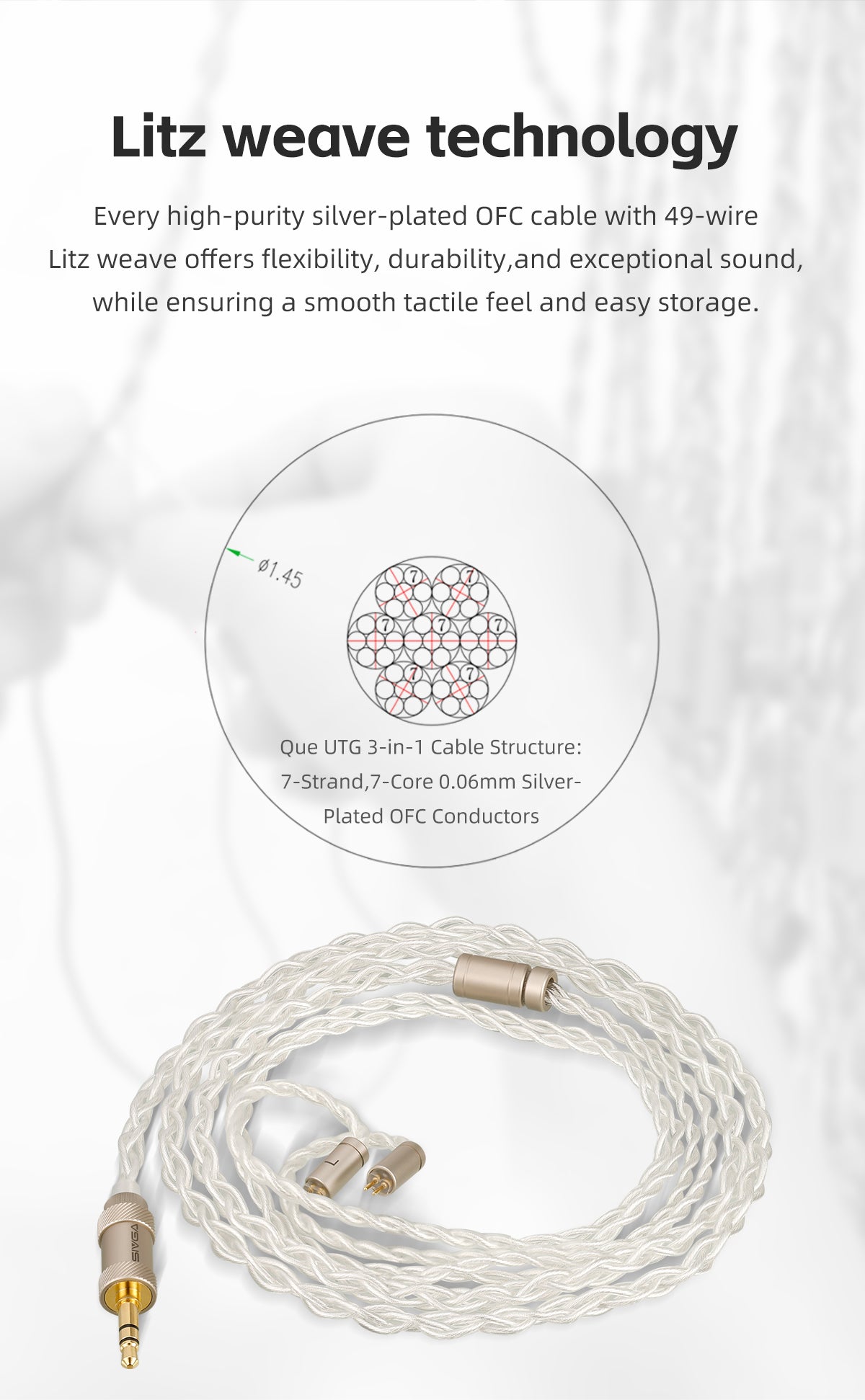 SIVGA Original 0.78mm 2-pin High-Purity Silver-Plated OFC Cable Interchangeable Plug Earphone Cable for Que UTG