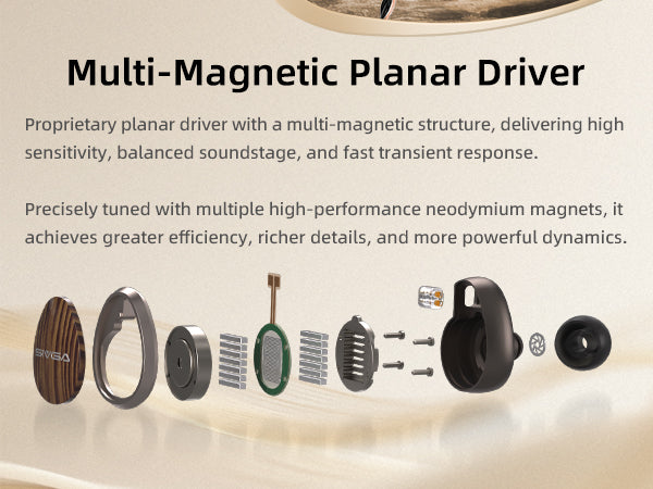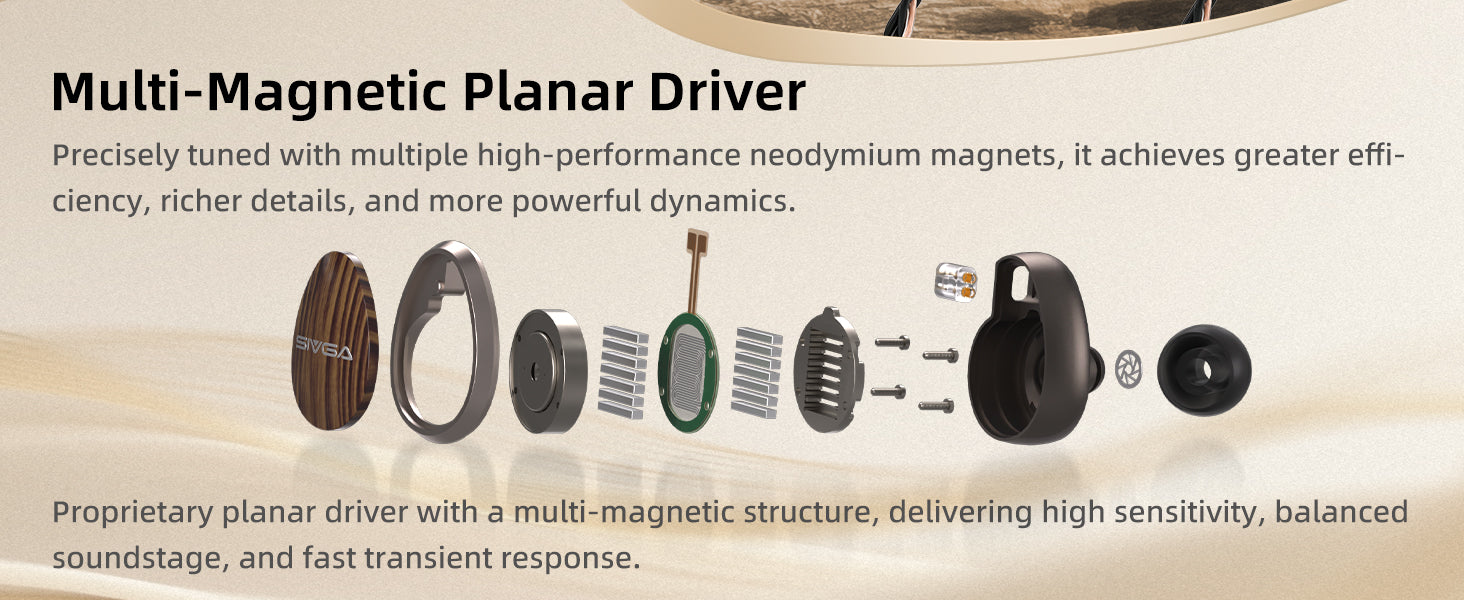 * Multi-Magnetic Planar Driver. Delivering high sensitivity, balanced soundstage, and fast transient response.
