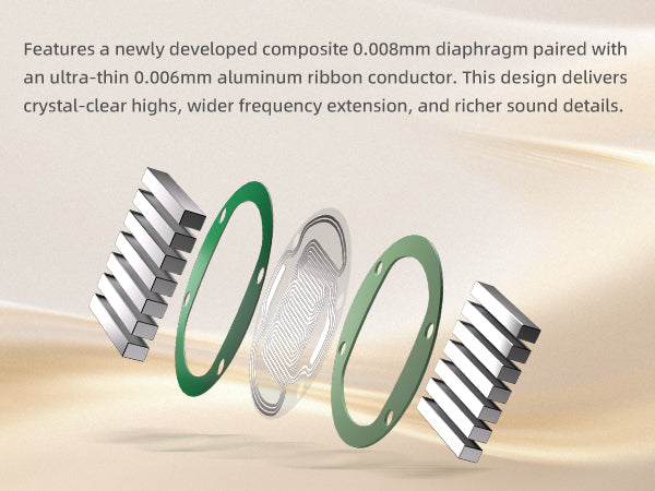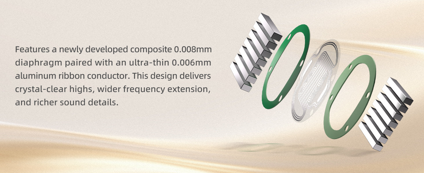 * Ultra-thin composite diaphragm. Delivering scrystal-clear highs, wider frequency extension, and richer sound details.