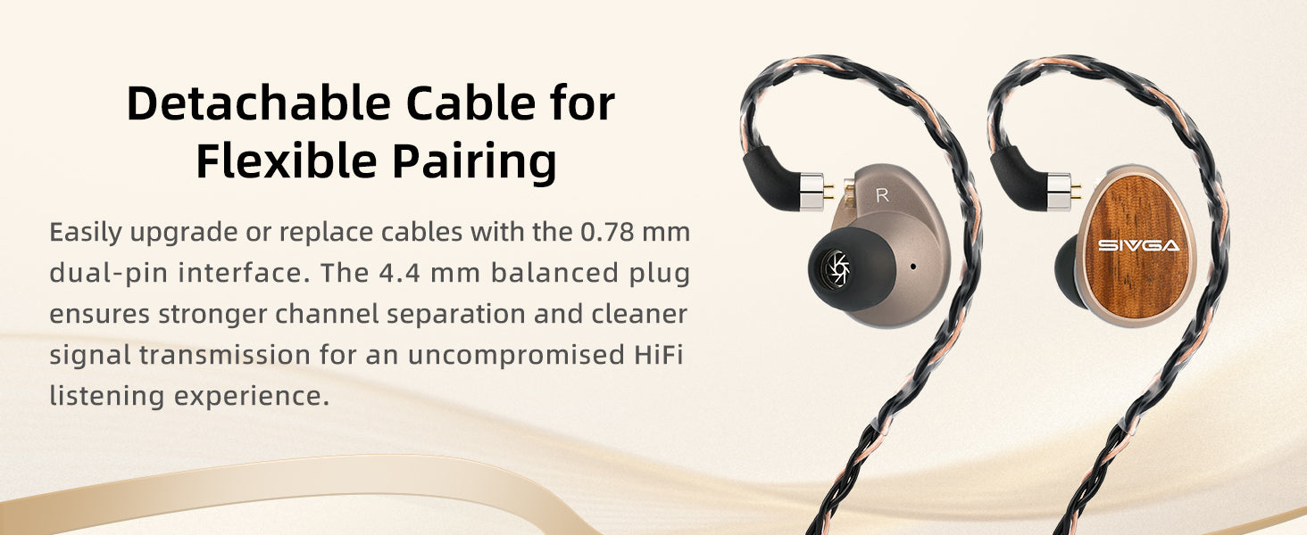 * 0.78mm 2pin detachable cable & 4.4 mm balanced plug.