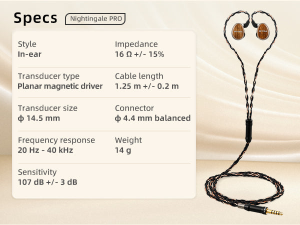 SIVGA Nightingale PRO Planar Magnetic Driver Wired HiFi Earphones 4.4mm Balanced 0.78mm 2pin Zebrawood In-Ear Monitor Music Earphones