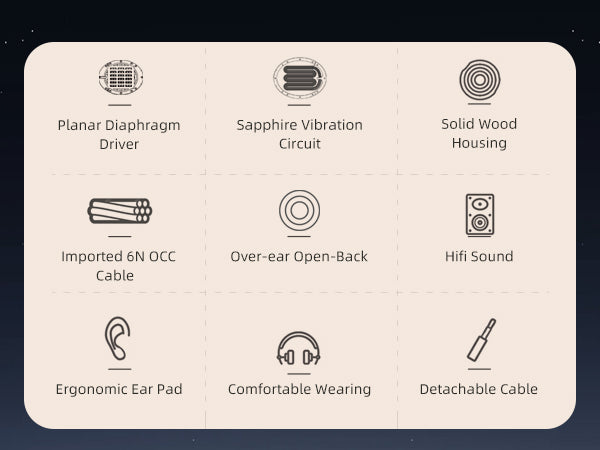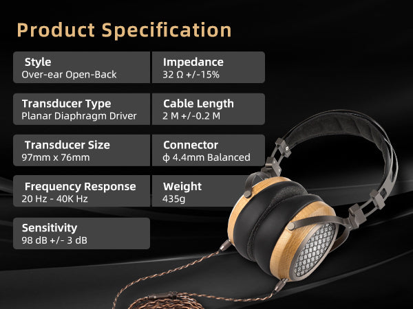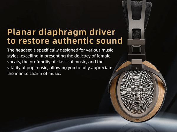 * The headphone housing is made of red oak by hand-polished, which makes delicate and elegant finishing.
