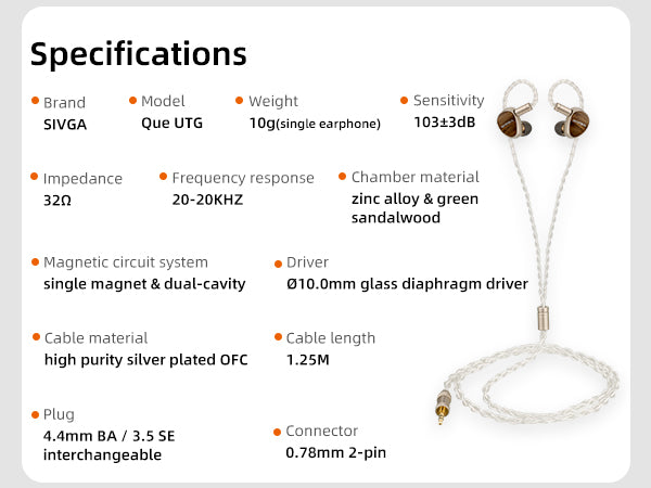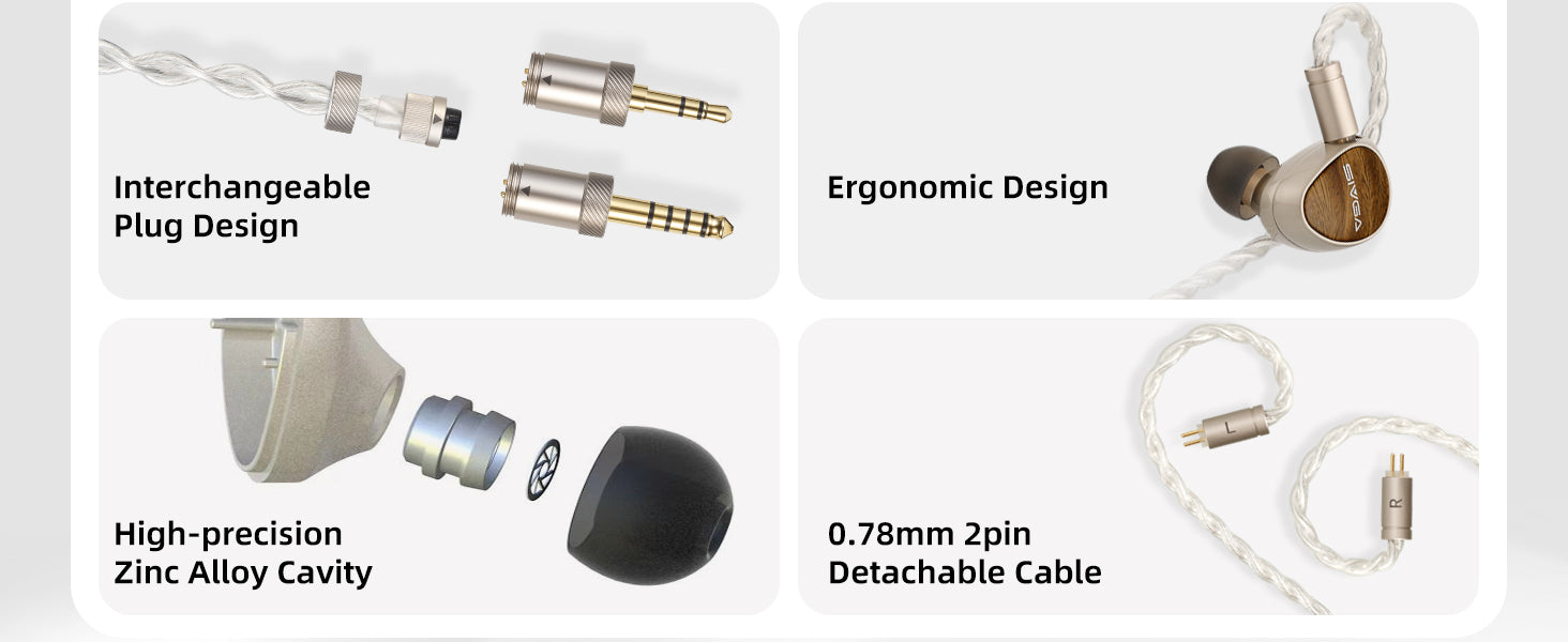 * 0.78mm 2-pin detachable cable for HiFi upgrades